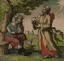Bede's account of the conversion is oft-cited. After Paulinus explains the tenets of Christianity, the king asks his counsellors what they think of the new doctrine. Edwin's priest Coifi responds that they may be worthwhile; after all, he says, no one has been more respectful of and devoted to their gods than he, and he has seen no benefits from his dedication to them. Then, an unnamed counsellor stands up and addresses the king, also seeing the benefit of the new faith. Coifi speaks again and announces that they should destroy the idols and temples they had hitherto worshipped. King Edwin agrees and embraces Christianity; Coifi himself will set fire to the idols,[17] declaring "I will do this myself, for now that the true God has granted me knowledge, who more suitably than I can set a public example, and destroy the idols that I worshipped in ignorance?" Bede goes on to describe the scene as Coifi "formally renounces his superstitions, and asked the king to give him arms and a stallion." Armed with both a sword and spear, Coifi rides Edwin's horse towards the idols, all within view of the crowd gathered to witness Edwin's conversion. Upon reaching the temple, Coifi "cast a spear into it and profaned it."[18]