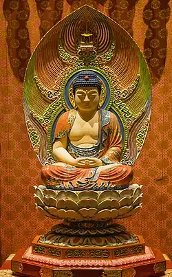 The Eight Guardian Deities are not mentioned in any traditional Buddhist scriptures. Besides Japan, they are also widely circulated in China Mainland, Hong Kong, Taiwan, and Chinese communities in Southeast Asia. Their images or seed syllables are often made into amulets, jewelry, thangkas,[4] Thai amulets, and creative industries. The Eight Guardian Deities are also enshrined in the Buddha Tooth Relic Temple and Museum, Singapore.[3]