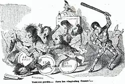 In the Legislative Assembly he voted with the Mountain.[2] In 1850, Girardin wrote an article called Le Socialisme et l'Impot. In his article, Girardin suggested that there was a "good" socialism and a "bad" socialism. This article was reviewed by Karl Marx and Frederick Engels in a jointly written article carried in their newspaper Neue Rheinisch Zeitung Politisch-Ökonomische Revue No. 4.[4] Giradin defined "good socialism" as promoting harmony between capital and labor, while "bad socialism" promoted war between capital and labor. Marx and Engels criticized Girardin's theory of good socialism as not being socialism at all. Girardin's "good socialism" actually ignored workers in society and concluded that society was composed exclusively of capitalists.[5]
