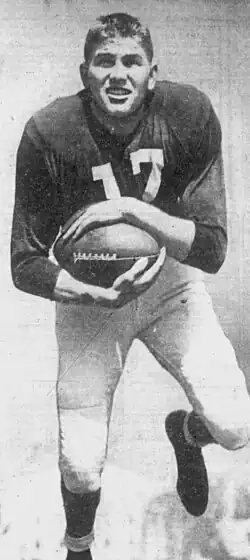 Ernest Cowan Johnson (January 29, 1926 – June 13, 2010) was an American college football and college basketball player. He was four-letter football player at the University of California, Los Angeles (UCLA) from 1946 to 1949.[1][2] As a running back, he led the team in scoring during his first season. His final season was the first of head coach Red Sanders, who made Johnson the single-wing tailback. As at UCLA, Johnson played basketball under coach John Wooden from 1948 to 1950 seasons and also played rugby. He was selected by the Philadelphia Eagles in the 1950 NFL draft, but never played in the National Football League (NFL).