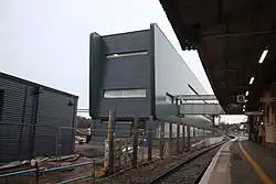 The new depot building which opened in 2021 has a three-storey block accommodating staff and their facilities opposite platform 6 of St Davids station. Behind this is a three-road maintenance shed. Two roads can take a five-car train while the shorter road for three-car trains is equipped with lifting jacks and a crane. There are stabling sidings alongside the maintenance shed and the old 1980 shed. There is also a train wash and fuelling facilities[7]