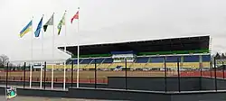 MFC Zhytomyr started to play at Tsentralnyi Stadion (Central Stadium), however soon at the stadium started renovations and the club moved to smaller Kolos Stadion.[8]