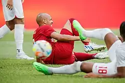 On 27 November 2019, during a crucial Champions League match against Napoli, he suffered an early ankle injury after falling awkwardly during a challenge and was substituted after 18 minutes.[66] Two days later, the club announced that the injury would keep Fabinho out of action until the start of 2020.[67] On 21 December 2019, Fabinho won the 2019 FIFA Club World Cup after Liverpool beat Flamengo in the final.[68] On 24 June 2020, Fabinho scored a long-range goal from more than thirty yards in a victory against Crystal Palace and was described by journalist Phil McNulty as a "complete operator" who "showed all sides of his game in what turned into a stroll".[69][70] The same game, he provided a brilliant pass for Mohamed Salah to score and effectively settle the contest.[70][71] Thus, Fabinho celebrated his 41st victory in what was his 50th Premier League appearance; only Didier Drogba, Arjen Robben, Ederson and Aymeric Laporte have won more of their opening 50 games in the competition.[70] On 25 June 2020, Liverpool won the Premier League after Manchester City were defeated by Chelsea with a score of 2–1.[72][73][74][75] Fabinho played a major part in Liverpool's 2019–20 Premier League title win that season.[76][77]
