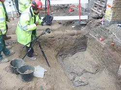 In archaeological excavation, a feature is a collection of one or more contexts representing some human non-portable activity, such as a hearth or wall.[1] Features serve as an indication that the area in which they are found has been interfered with in the past, usually by humans.[2]