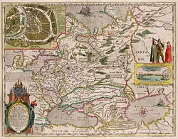 Physically robust and passionately beloved by his father, he received the best education available at that time, and from childhood was initiated into all the minutiae of government, besides sitting regularly in the council and receiving the foreign envoys. He seems also to have been remarkably and precociously intelligent, creating a map of Russia, which is still preserved.[1][2] It was edited with some additions by Hessel Gerritsz in Amsterdam, in 1613, and had been reedited until 1665.
