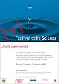 The Festival della Scienza is an annual science festival held in Genoa, Italy. It was launched in 2003 combining hundreds of different initiatives and events, designed to fulfill and stimulate the interest of visitors of all ages and all levels of knowledge. Modulation in diverse formats and original languages is always one of features of the Festival. The aim of the array of interdisciplinary proposals is to overcome the traditional opposition between scientific and humanistic culture. Events include scientific exhibitions, workshops, interactive educational experiences, photography and "art-science" exhibitions, conferences, round tables, performances, music and films.