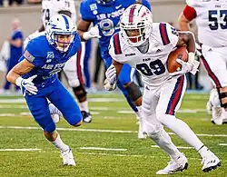 On December 12, 2016, it was announced that former USC and Tennessee head coach Lane Kiffin would become the Owls' next head coach.[13] Kiffin resigned from FAU on December 7, 2019, after a 49–6 blowout win against the university of Alabama at Birmingham (UAB) and before FAU's Boca Raton Bowl appearance against SMU Mustangs to become the head coach at the University of Mississippi (Ole Miss).[14] Kiffin left FAU with a record of 26–13 with two first-place finishes in Conference USA. In December 2019, FAU tight end Harrison Bryant won the John Mackey Award, becoming the first FAU player to win a major collegiate postseaon award, as well as becoming FAU's first consensus, and later unanimous, All-American.[15][16] FAU's first year defensive coordinator, Glenn Spencer, was named the interim head coach to lead the Owls at the Boca Raton Bowl.[17]