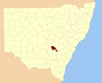1. ^ "Forbes County". Geographical Names Register (GNR) of NSW. Geographical Names Board of New South Wales.