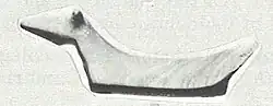 The animal remains were dominated by deer bone. Also present were raccoon, muskrat, turtle, fish and clam, as well as the dog burial.[1] These remains were not modified into tools like the bone tools described in the Artifacts section below, and may be considered food remains or, in the case of the dog, possibly the remains of ceremonial activities. Dog sacrifice was observed to have ceremonial and religious implications in early Native American tribes.[3]