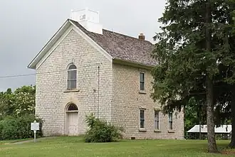 Frankville School, also known as the Frankville Museum, is a historic structure located in the unincorporated community of Frankville, Iowa, United States. It was built in 1872 by W.H. Hopper, replacing an older building from the mid-1850s.[2] It is a two-story, stone vernacular structure, capped with a gable roof. The stone is rock-faced ashlar limestone. The stones on the front facade are carefully dressed compared with those on the other elevations. The lintels and window sills are blocks of rock-faced stone, except for those on the front. On the front, carefully dressed stone voussoirs and keystones are used for the round arches for the main entrance and the window above. High school classes were added in the 1920s. In 1958 the school was reduced to kindergarten and 7th and 8th grades. It closed in 1962. The following year the Winneshiek County Historical Society acquired the building and operated a museum in it. It remains in the community's park.