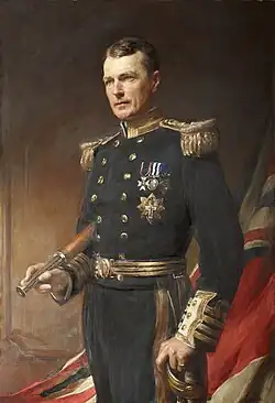 In August 1901 he was appointed to command the cruiser HMS Prometheus,[3] which was commissioned to serve in the Channel Squadron the following September.[4] He was promoted to captain on 31 December 1901[5] and served in this rank for a decade, commanding the battleship Renown for two months in late 1907. He was placed on the Retired List at the rank of rear admiral in May 1911.[6]