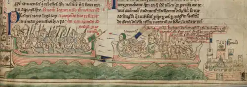 - Miniature from the Chronica Maiora depicting the Battle of Giglio against Gregory IX in 1241