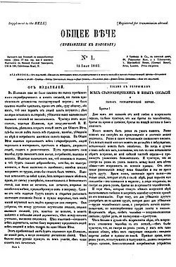Obshcheye Veche, 15 July 1862. The first issue