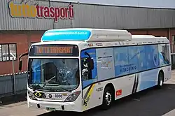 In 2018, Toyota announced that they would be supplying their hydrogen fuel cell technology to Portuguese bus manufacturer Caetano, for buses to be sold in Europe.[46] The Caetano H2.City Gold has achieved numerous sales, such in Bielefeld,[47] Cottbus,[48] and Barcelona.[49] Caetano has subsequently begun to brand the bus as a "Toyota", after Toyota became a majority shareholder.[50]