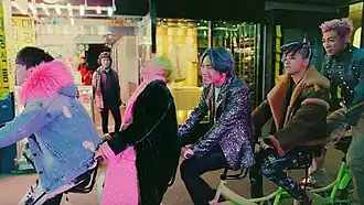 In the music video for "Fxxk It", the members engage in various "immature" activities such as riding a tandem bicycle through a commercial area.