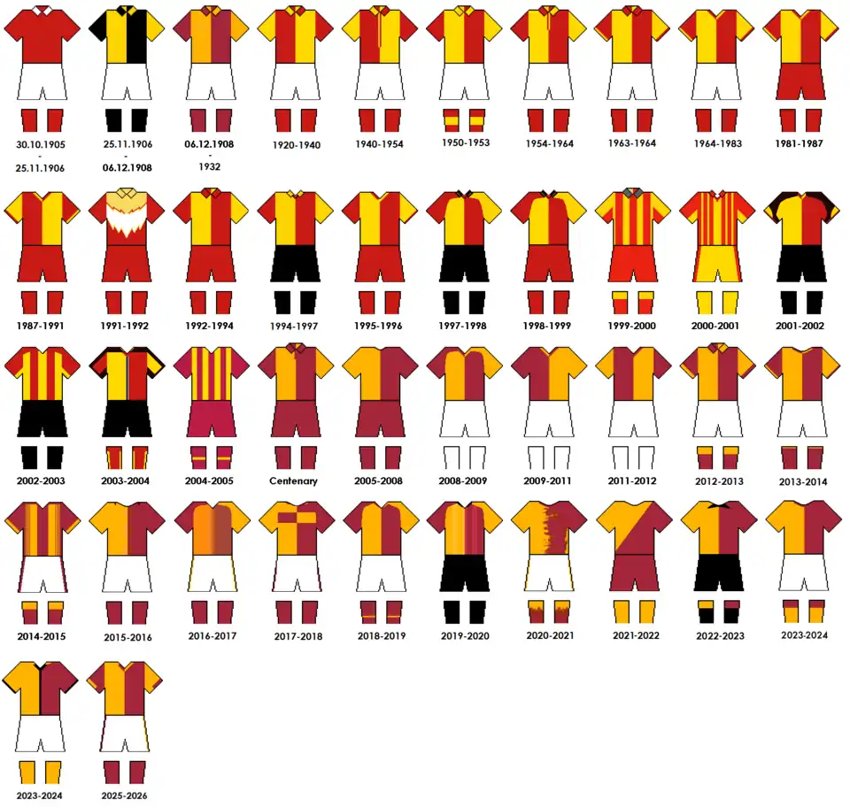At first, the colours of Galatasaray were red and white. These are the colours in the modern Turkish flag. The Turkish Republic, however, was not founded at that time. Therefore, this decision caused the repressive administration of the day to feel uncomfortable and the administration subsequently pressured the footballers. For this reason, on December 26, 1906, the colors were changed to yellow and black.[37] The eight-piece halved design kit was ordered from the Sports Outfitter William Shillcock based in Birmingham, United Kingdom.[38] After a heavy 0–5 loss to Baltalimanı in a friendly match the new colours yellow and black were counted as inauspicious.