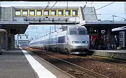 The station is served by both the TGV and the regional trains and buses of the TER Pays de la Loire. The TGV (high speed train) provides connection to Paris, Lyon, Marseille, Lille, and Strasbourg; with trains to Paris via the LGV Atlantique taking just over 2 hours. TER Pays de la Loire and Interloire provide links to Nantes, Angers, Le Mans, La Roche sur Yon, and many other regional cities and towns.[5][6]