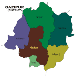 Gazipur District was established in 1984. It has one city corporation, the Gazipur City Corporation, and is divided into the following upazilas: