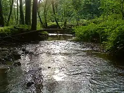 The Geiselbach is a right tributary of the Kahl in the northern Spessart mountainous range in Bavaria and Hesse, Germany. It is 5.2 km (3.2 mi) long and begins at the confluence of multiple headstreams in Geiselbach. The largest tributary is the Omersbach. It discharges near the Teufelsmühle ("Devil's Mill"). The Geiselbach flows through the Teufelsgrund ("Devil's Valley") to Hüttelngesäß and forms the border between Hesse and Bavaria. Near the village Brücken it empties into the Kahl.