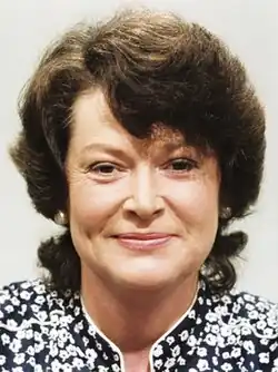 Hussey served as Minister for Education in the Fine Gael–Labour Party coalition government of Taoiseach Garret FitzGerald from 1982 to 1986, during which time she was heavily criticised by teachers' unions during a bitter pay strike in 1984.[12] The 1980s was a decade of economic crisis and the government was faced with challenges caused by the precarious state of the public finances. This meant that she had to find ways to reduce the Education budget. One of her measures was to introduce charges for the school transport system, which proved unpopular. However, third-level enrolments were increasing rapidly and Hussey secured increased funding for higher education at a time of severe spending cutbacks.[13] In 1986, she became Minister for Social Welfare. FitzGerald considered creating a new ministry for Hussey as Minister for EEC affairs. However, she did not wish to compete with the Department of Foreign Affairs, and so declined the position.[14]