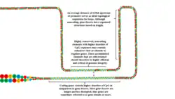 On the other hand, approximately 80% of gene deserts have low GpC contents, indicating that they have very few essential genes.[6] Thus, the majority of gene deserts are variable gene deserts, which may have alternate functions. One prevalent theory regarding the origins of gene deserts postulates that gene deserts are accumulations of essential genes that act as a distance.[1][7] This may hold true, as given the low numbers of essential genes within them, these regions would have been less conserved. As a result, due to the prevalence of cytosine to thymine conversions, the most common SNP, would cause a gradual separation between the few essential genes within variable gene deserts. These essential sequences would have been maintained and conserved, leading to small regions of high density that regulate at a distance.[7] GC content is therefore indication for the presence of coding or regulatory processes in DNA.