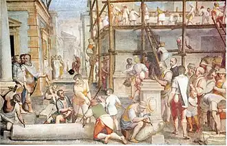 La costruzione di Strada Nuova, fresco by Luca Cambiaso in Palazzo Lercari-Parodi