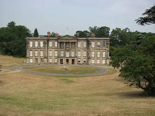 Crewe was called upon to serve as High Sheriff of Derbyshire in 1821, and one of his first acts was to do away with the Assize Ball publishing a letter "showing how cruel and heartless it appeared that any person should be found engaged in worldly mirth and amusement on so solemn an occasion, when so many poor creatures were trembling on the eve of their trial, perhaps for their lives."[3] After several years looking after his estates, he was persuaded to stand as Member of Parliament for South Derbyshire in 1835, and was returned again in 1837. His health was always poor and he retired in 1841. Crewe was a considerable philanthropist with strong Christian principles, and was considered "too conscientious for a member of Parliament".[3] Shocked by the poor conditions in which his tenants lived and worked he built schools and rebuilt the churches at Ticknall and Calke, staffing them with well educated clergy.[4] The Harpur Crewe family were great collectors, and Sir George collected paintings, stuffed birds and animals.[5] Harper Crewe became the President of the Derby Town and County Museum and Natural History Society in 1836. This organisation became Derby Museum and Art Gallery.[6]