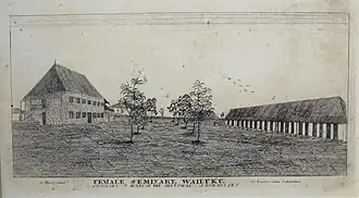 From 1846 to 1850, he served as deputy governor of Hawaii; Leleiohoku died in the measles epidemic of 1848.[7] In 1849, Kapeau contravened the treaty under which the Roman Catholic priests were entitled to import porcelain duty-free by sending tax assessors to attempt to collect taxes on the goods from the priests in Kailua. The actions of the assessors resulted in the smashing of the china, leading the French consul in Honolulu to lodge a complaint over the incident to Admiral de Tromelin, commander of a French warship.[16] Infuriated by the Consul's complaints, the French Admiral made ten demands to King Kamehameha III on August 22.[17] One of these demands was "the removal of the governor of Hawaii for allowing the domicile of a priest to be violated by police officers who entered it to make an arrest or the order that the governor make reparation to that missionary."[17] When the king refused, Admiral de Tromelin invaded Honolulu, sacked the Fort and caused an estimated $100,000 in damages.[16][17] The situation didn't seem to have any effect on Kapeau's position as acting governor, and in July 1850 he became the official governor of the island after four years as acting governor.[18]