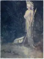 He claimed to see nature spirits and made paintings about them, such as the sídhe, elven or faerie beings in Irish folklore.[19][20] On one occasion, he showed some drawings he had made of them to a peasant, who would have pointed out that he had already seen many of those entities.[20] In 1889 he had traveled with W. B. Yeats to a town in County Galway, where Russell also painted these spirit beings, and a Druid is said to have appeared to them in vision.[21] The previous year, in a letter to Yeats, Russell had stated:
