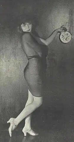 Gilda Gray claimed herself to have been born on 24 October 1901 in Kraków (then part of Galicia-Lodomeria, Austria-Hungary, and now part of Poland) and she was an adopted child of Maksymilian (Max) and Wanda Michalski (née Kuras).[1] However, according to her birth certificate she was born on 25 October 1895 in a village Rydlewo near Żnin (Żnin County, Kuyavian-Pomeranian Voivodeship) and Maksymilian and Wanda Michalski were her biological parents.[2] In 1903 she emigrated with her parents to the United States.[2] She had one sister, Josephine, who was born in 1904 in Bayonne, New Jersey.[2] In 1907, the family moved to Cudahy, Wisconsin, a suburb of Milwaukee. At the age of only 14 or 15, Gray entered into an arranged marriage with John Gorecki, a concert violinist, who was the son of Socialist, Wisconsin State Assembly member, and union leader Martin Gorecki. The couple had one child, then divorced in 1923. Their son later became a bandleader, performing under the name Martin Gray (1913–1969).[1][3][4]