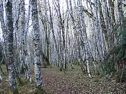 In the most general sense, a glade or clearing is an open area within a forest.[1][2] Glades are often grassy meadows under the canopy of deciduous trees such as red alder or quaking aspen in western North America. They also represent openings in forests where local conditions such as avalanches, poor soils, or fire damage have created semipermanent clearings. They are very important to herbivorous animals, such as deer and elk, for forage and denning activities.