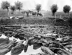The excavation of the area began in 1892 and continued over the next 15 years, uncovering the extent of the settlement and publishing the results.[22][23] From 1892 until 1899 Bulleid worked with labourers for six months of each year and spent the other six months describing and cataloguing the finds. He then left the site to complete his medical studies and returned in 1904 with Harold St George Gray to continue the excavation until 1907.[24] The curator of the Taunton museum of the Somerset Archaeological and Natural History Society, Gray had been trained in archaeological techniques by the archaeologist Augustus Pitt Rivers.[25]