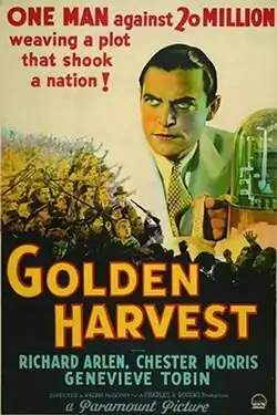 Golden Harvest is a 1933 American Pre-Code drama film directed by Ralph Murphy and written by Nina Wilcox Putnam and Casey Robinson. The film stars Richard Arlen, Chester Morris, Genevieve Tobin, Roscoe Ates, Julie Haydon, Elizabeth Patterson and Berton Churchill. The film was released on September 22, 1933, by Paramount Pictures.[1][2]