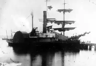 The vessel was lengthened and ran as a passenger boat on the Sacramento under the name of Defender. During this time, Goliah was engaged in fierce competition with the New World, another steamer brought around from the East Coast in defiance of creditors. At one point, this competition produced gunfire between the passengers and crews of the two steamboats when Goliah, or so it is alleged, attempted to ram and sink the New World.