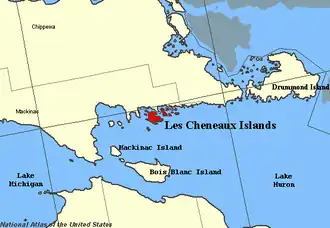Les Cheneaux Islands highlighted in red. | |