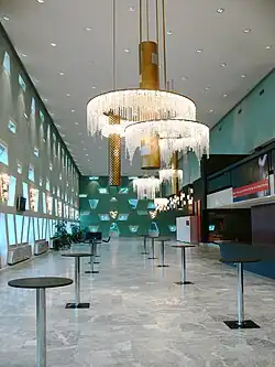 The theatre consists of two auditoriums: the main theatre with 943 seats and the studio which has up to 400 seats but can be compartmentalized. There is also an underground car park with 450 parking spaces.[2] Improved cloakroom facilities have been installed in the lower level of the foyer while a new bar and fittings have been added to the upper level.[3]