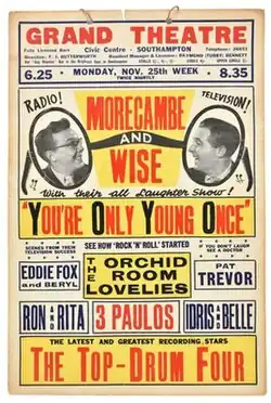 The Grand Theatre became "The New Hippodrome" from 25 March 1939 until 14 September 1940, when it closed. It was used to provide accommodation for soldiers during World War II. With the end of war the theatre was renovated and, under its old name of the Grand Theatre, hosted dramas with its resident repertory company. As audiences dwindled in the 1950s as television became more popular, the theatre featured more striptease shows.[3] The theatre finally closed in 1959 and was demolished in 1960.[2] Marland House, a large commercial office block in the Brutalist style was constructed on the site in 1963 providing offices for local social services. On the demolition of this in about 2016 a new Marland House was built providing student accommodation for the nearby University of Southampton.[1][8]