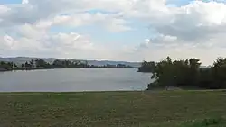 Known alternately as "Tower Island Chute"[2] or as "Grand Tower Chute",[4] the lake is lined by trees along much of its interior shoreline,[6]: 4–90 and as a result, the lake's shores are full of fallen logs and snags — a fine habitat for fish species such as crappie and bass.[4] Reports in the Southeast Missourian during the 1960s highlighted the lake's high population of crappie, even in contrast to populations from Horseshoe Lake to the south,[7] and the lake's carp population is large enough to warrant its inclusion in a carp-fishing contest in the early 2010s.[8] Between 2006 and 2007, researchers from Southern Illinois University in nearby Carbondale studied fish at various locations within and along the Mississippi River from the vicinity of Golden Eagle to Cairo.[9]: 291 Among their findings were that the water in Grand Tower Chute had a higher barium-to-calcium ratio than anywhere else except for a portion of the Missouri River, and that fish from the chute had a higher strontium-to-calcium ratio than fish from any other lake in the floodplain and the highest barium-to-calcium ratio of any location.[9]: 295