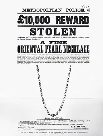 - ^ Jordan, Steven (1 December 2013). "THE GREAT PEARL ROBBERY OF 1913". Jewellery Valuations updates from Hawksworth Valuations. Retrieved 8 September 2022.