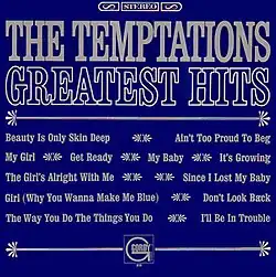 Greatest Hits is a 1966 greatest hits album for the Temptations, released by the Gordy (Motown) label. It peaked at #5 on the Billboard 200 album chart and remained on the chart for 120 weeks. Included are popular Temptations hits such as "The Way You Do the Things You Do", "Get Ready", "Since I Lost My Baby", "My Baby", "Don't Look Back", and their signature #1 hit, "My Girl". One non-album single, "Beauty Is Only Skin Deep", is also included; it was a #3 hit in the summer and fall of 1966.