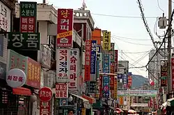 Guro District is home to one of two the town chinatowns in Seoul, the other being in Gwangjin district. The Guro chinatown straddles the border between Guro District and Yeongdeungpo district and strectches from Dearim-dong to the north to Namguro in the south.[19] The area is known for containing a significant number of Chinese restaurants and shops which primarily cater to the Chinese expatriate community in the area. This is particularly concentrated at Uma 2-gil, known as Yeonbyeon Street.[20] Namguro Market serves as the focal point for shopping in the area and is adjacent to Namguro station on Seoul Metro Line 7.
