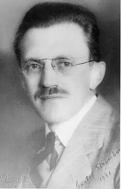 Strömberg was born in Gothenburg to Johanna Elisabeth née Noehrman and Bengt Johan Gustaf Lorentz Strömberg. He studied at the University of Lund, obtaining a PhD in 1916. He then moved to the Carnegie Institution and worked at the Mount Wilson Observatory. He became a naturalized citizen of the United States in 1922. His astronomy work had largely been on the studies of star velocities.[1] His work included studies on the luminosity of the long-period variable stars and his work on the “asymmetry of stellar motions” making use of the Lindblad–Oort theory of galactic rotation suggested globular clusters with some stars effectively moving towards us.[2][3][4][5] He then used this to estimate radial velocities.[6][7][8][9][10]