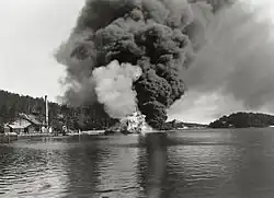 The disaster occurred on 17 September 1941.[1] Three Swedish Navy destroyers were berthed in Hårsfjärden fjord near Stockholm when the torpedoes[2] or oil tanks[3] of Göteborg exploded; flames then also enveloped Klas Horn and Klas Uggla in an inferno.[2][4]