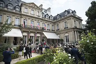 During the German occupation of France, the mansion, then owned by Baron Maurice de Rothschild, was requisitioned as an officers' club for the Luftwaffe. After the war, it was rented out to the British Royal Air Force Club, and then to the U.S. In 1948, the American government purchased the building, primarily for the United States Information Service. These offices were moved to the Hôtel Talleyrand as restoration was completed in 1971 during the tenure of Ambassador Arthur K. Watson. The building then became the official residence of the ambassador.[1]