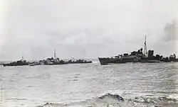 - ^ The search was performed by cruiser HMS Gambia with destroyers HMS Rotherham and Tjerk Hiddes.