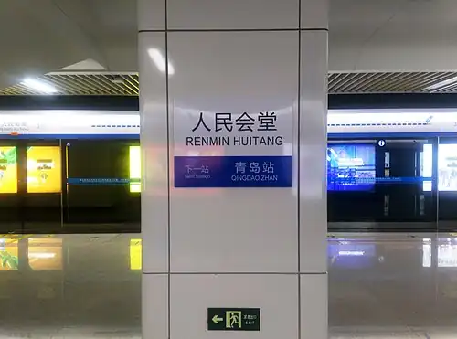 Hall of the People (Chinese: 人民会堂) is a station on Line 3[1][2] and Line 4 of the Qingdao Metro. It opened on 18 December 2016 for Line 3 and 26 December 2022 for Line 4.[3]