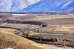 The Harbin-Manzhouli line has undergone substantial upgrades over the years.[6] Double-tracking began in 1983, with the Harbin–Anda section being the first section to be completed, in 1985; the entire line was completed in 2007, when the Manzhouli–Hailar section was completed,[12] increasing the line's capacity sixfold.[12] In 1990, semi-automatic train control was introduced, with DFH3-class diesel locomotives on passenger trains, and DF4B-class diesels and Renmin-class steam locomotives on freight trains. Operating speed on the line was raised to 100 km/h (62 mph).