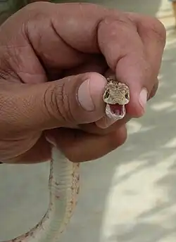 - ^ a b c d Behbehani, S.J.Y.; Al Johany, A.M.H.; Egan, D.M.; Kaya, U.; Nilson, G.; Sevinç, M.; Tok, C.V.; Werner, Y.L.; Srinivasulu, B.; Srinivasulu, C.; Disi, A.M.; Crochet, P.-A.; Ugurtas, I.H.; Sindaco, R.; Anderson, S.; Kulkarni, N.U.; Mohapatra, P.; Das, A.; Achyuthan, N.S.; Thakur, S. (2021). "Platyceps ventromaculatus". IUCN Red List of Threatened Species. 2021: e.T164685A1067773. doi:10.2305/IUCN.UK.2021-3.RLTS.T164685A1067773.en. Retrieved 30 June 2023.