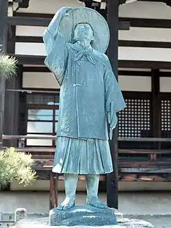 Hasegawa Tōhaku, born Okumura Tōhaku (奥村 等伯)[3] in 1539 in Nanao,[1] a town in Noto Province (in the vicinity of present-day Ishikawa Prefecture) to a noted local family of cloth dyers, although evidence shows that Tōhaku's original family name was Okumura and that he was adopted into the Hasegawa family.[3]