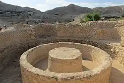 After the Yom Kippur War in 1973, extensive excavations were conducted on site by archaeologist Ehud Netzer. The excavations continued for ten seasons and covered an area of 30 hectares. The excavations also revealed remains of aqueducts to the west of Jericho. At the oasis of Jericho, Netzer uncovered new wings of Herod's winter palace, as well as a Hasmonean (Maccabean) winter palace containing a number of swimming pools and gardens.[4] The complex includes what Netzer identified as a synagogue, built 70–50 BC and as such one of the oldest synagogues ever found.[5]